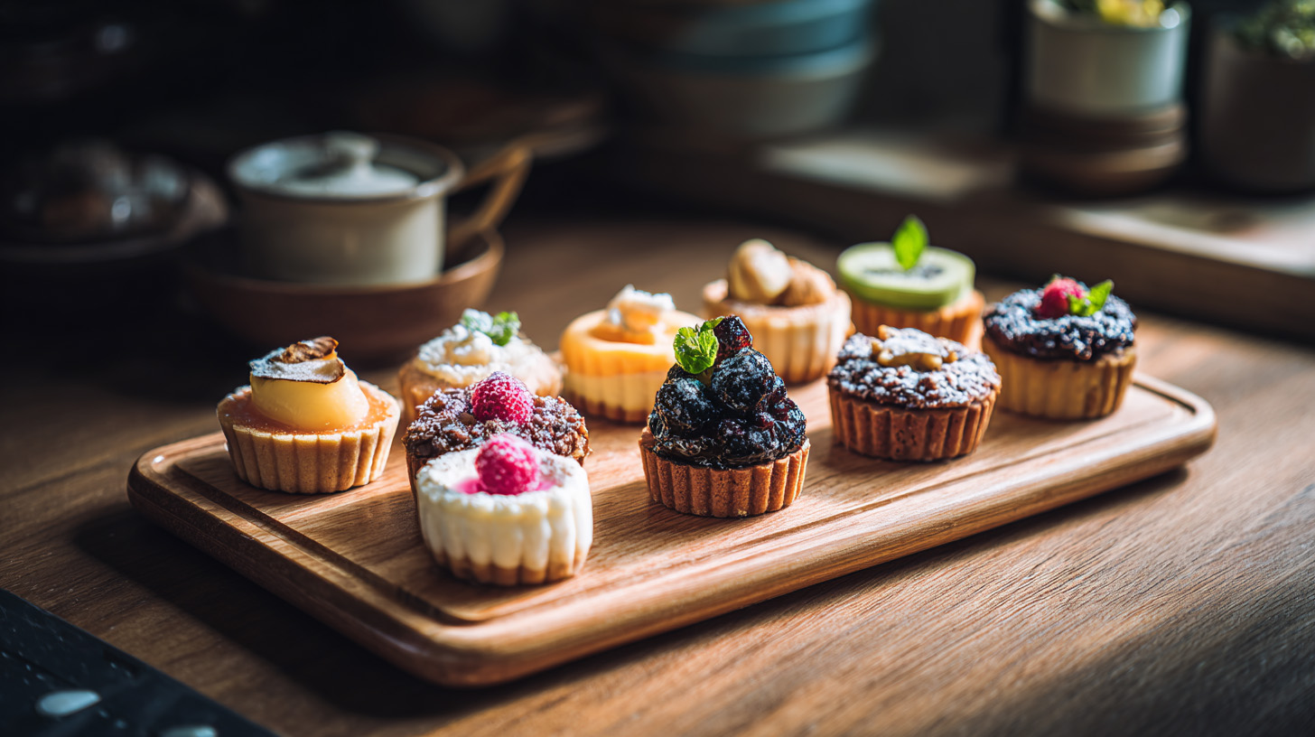 - มินิทาร์ตผลไม้: เด่นที่การใช้ผลไม้สดแต่งหน้า หวานน้อยแต่ได้สัมผัสรส
